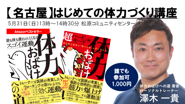 本講座では、澤木一貴の著書『体力おばけへの道』『体力おばけへの道 超ハードモード編』の内容をもとに、体力とは何かをわかりやすく解説しながら、日常生活の中で無理なく取り入れられる運動習慣をお伝えします。